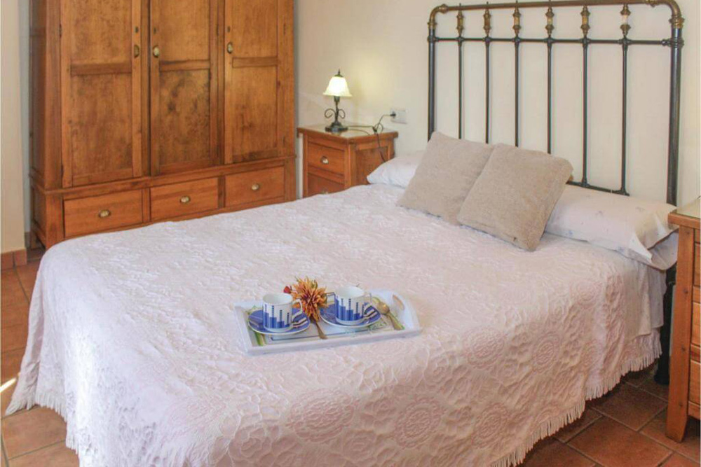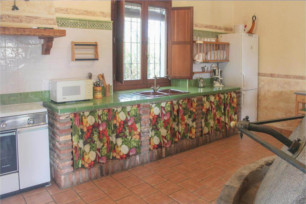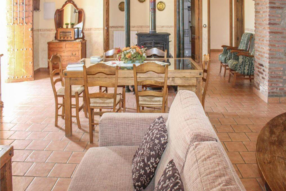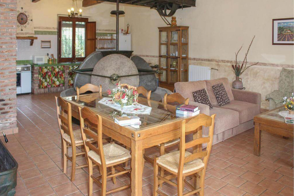 Es una antigua casa molino de aceite, centenaria, rehabilitada que incorpora en el salón de 70 m2 ,las antiguas maquinas,en el centro se encuentra el empiedro separando la cocina del comedor y a un lado junto a los dormitorios se encuentra la prensa reconvertida en chimenea.